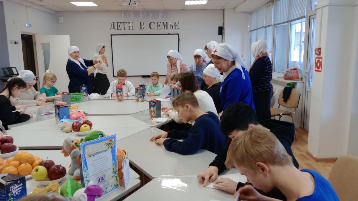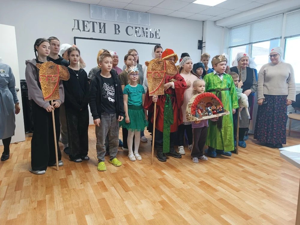 17 января 2026 года, в святые дни Рождества Христова, педагоги и учащиеся воскресной школы во имя св. прав. Симеона Верхотурского вместе с добровольцами по социальному служению «Под крылом Ангела» Свято-Троицкого Архиерейского подворья г.Ирбит посетили ГАУСО СО «Ирбитский центр социальной помощи семье и детям».