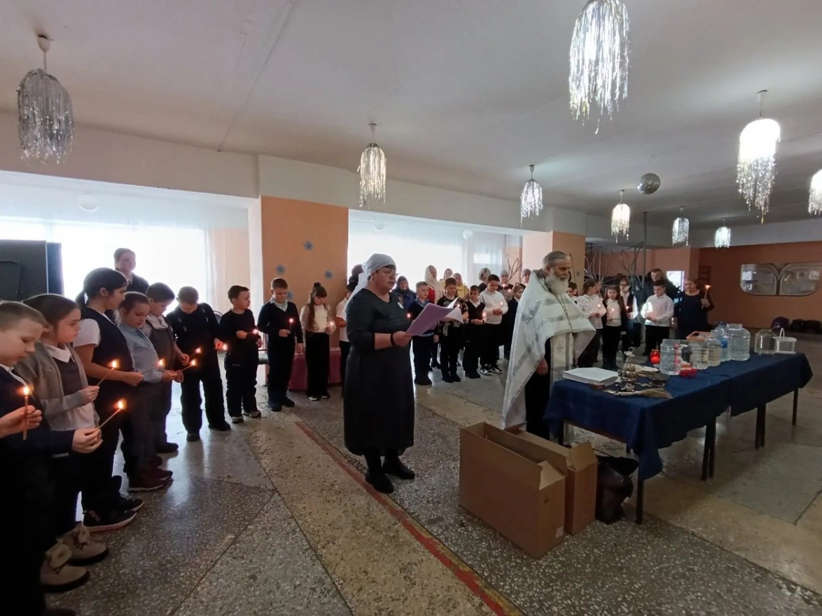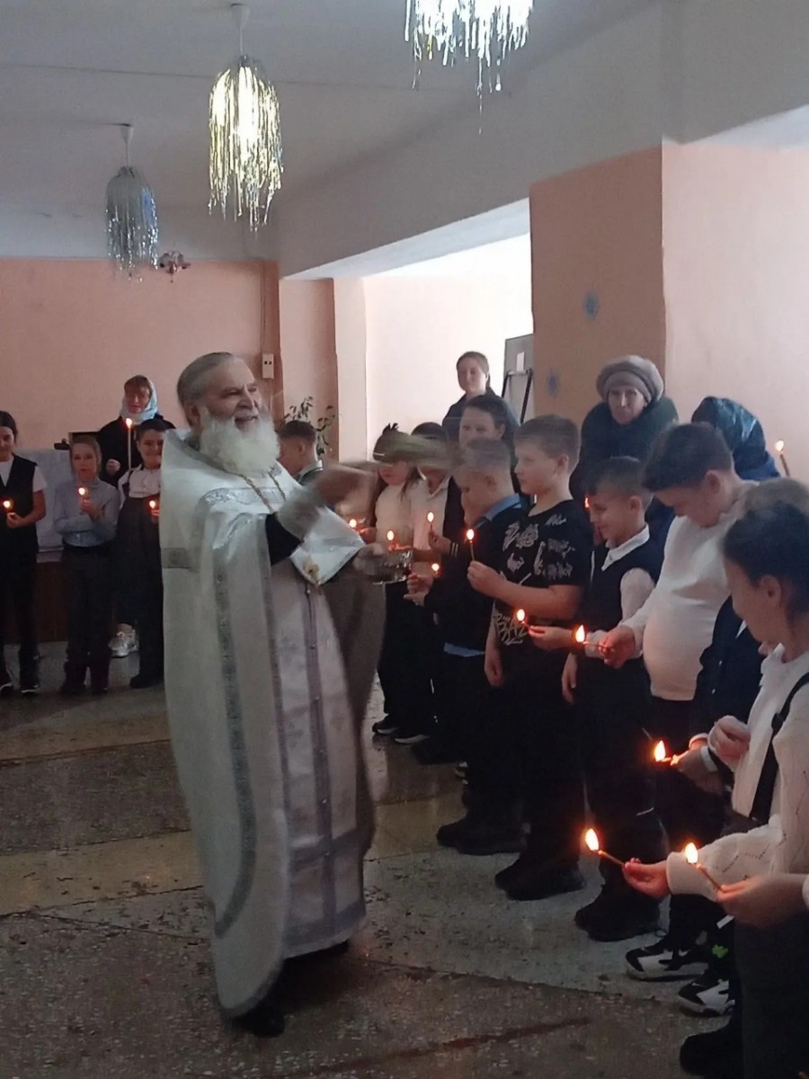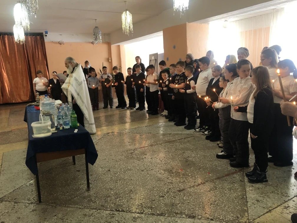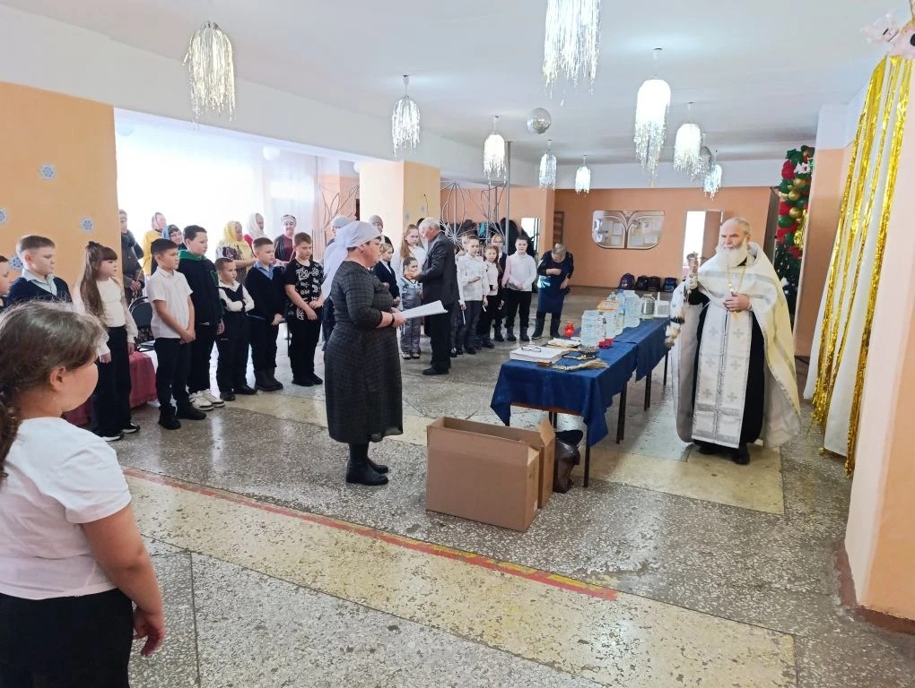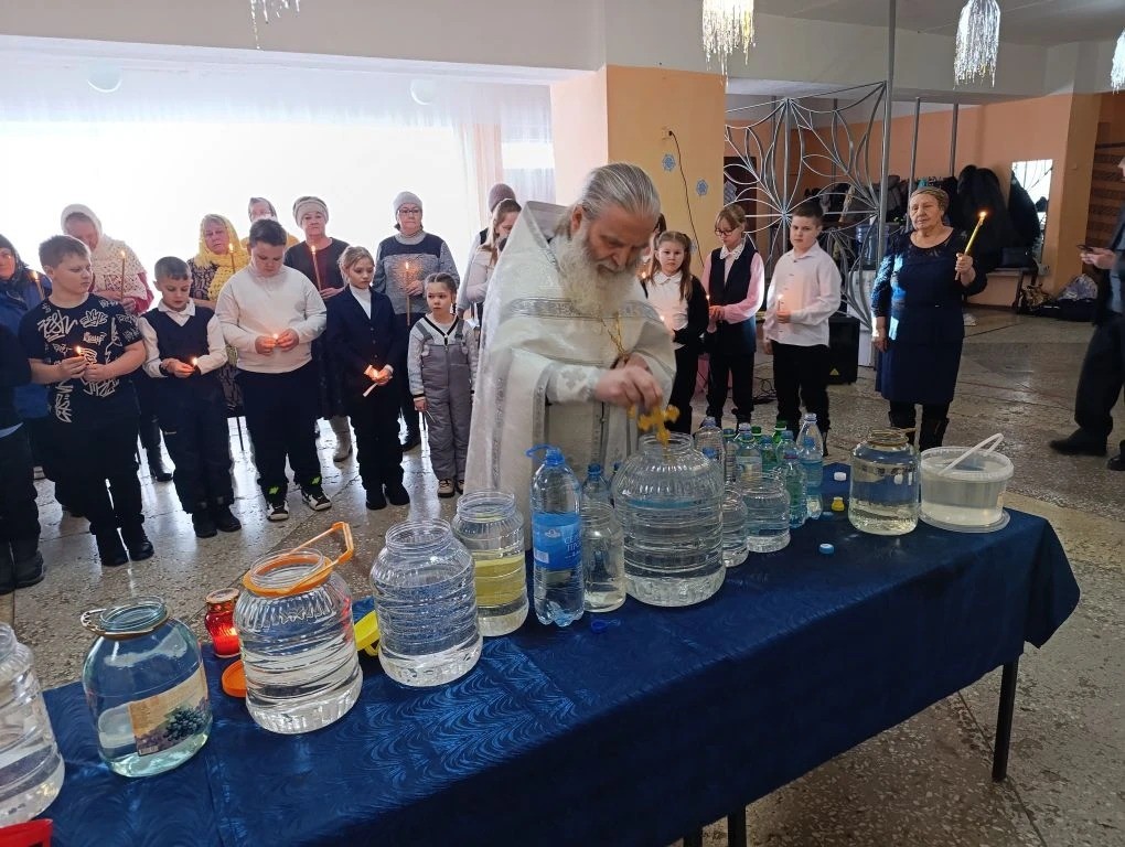 Отец Николай совершил чин Великого освящения воды, после чего окропил всех присутствующих крещенской святой водой. Дети были в восторге, все сразу заулыбались, лица сияли радостью.